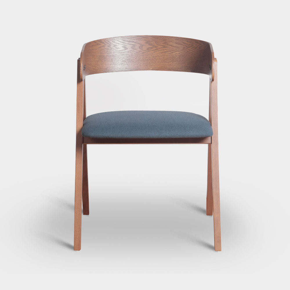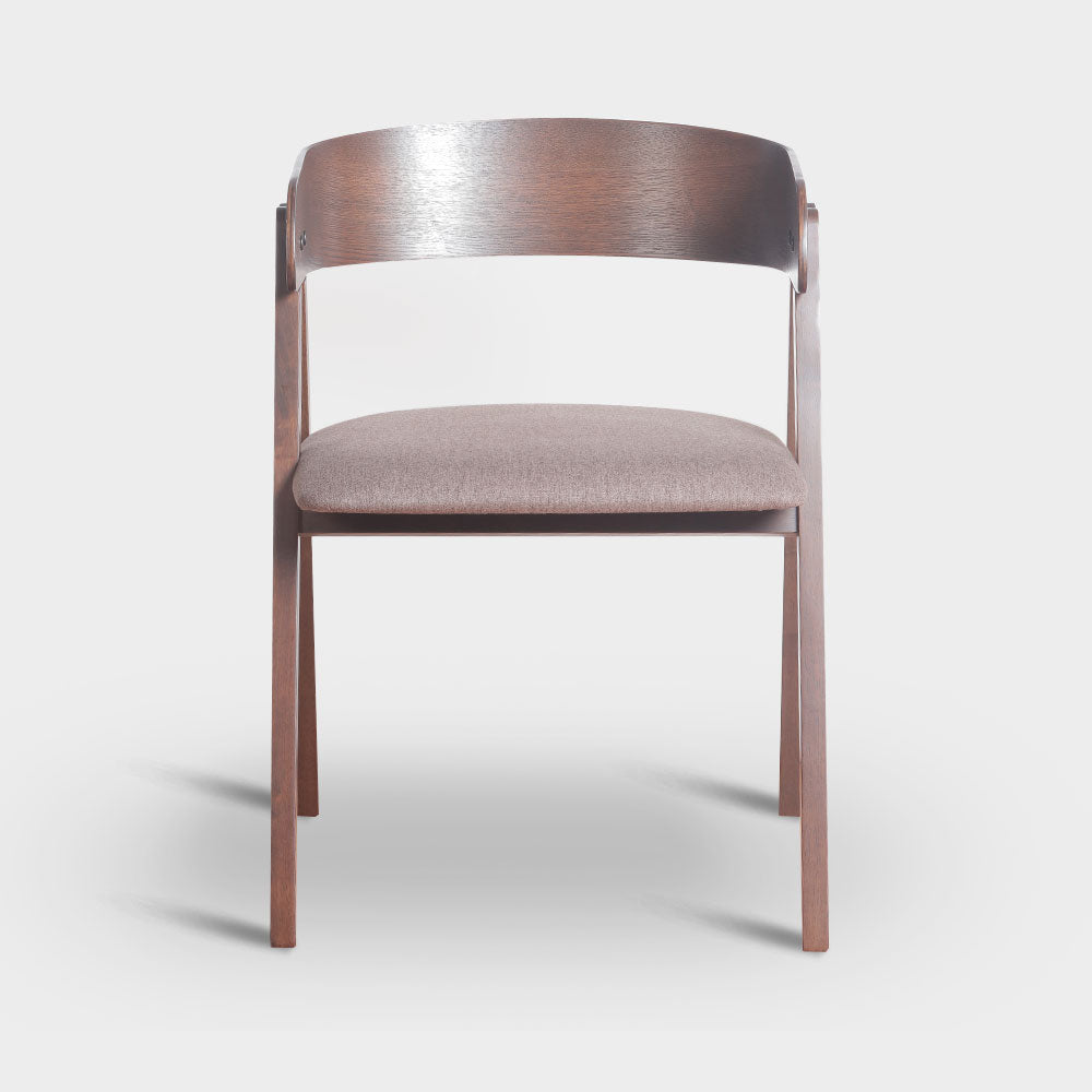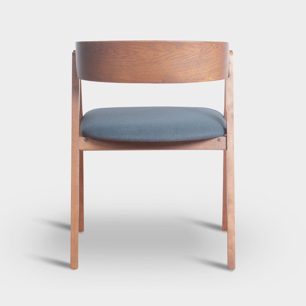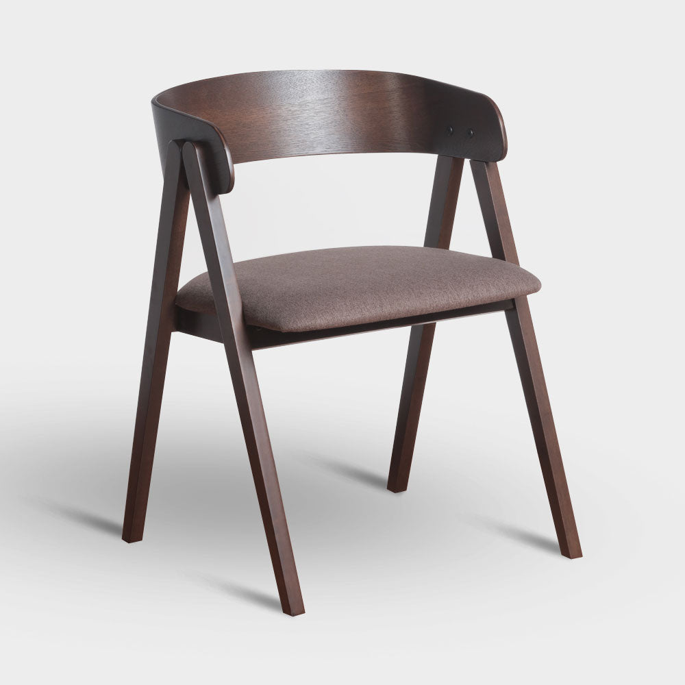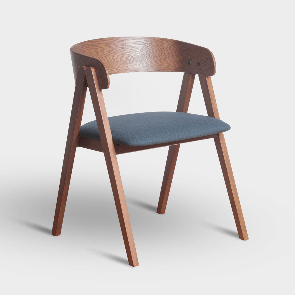 A Mid-Century Modern dining chair with bentwood backrest design, made from Malaysian oak in veneer finish with challis fabric padded seat.Size: W54xD55xH74.5 cmSeat Height 47 cm